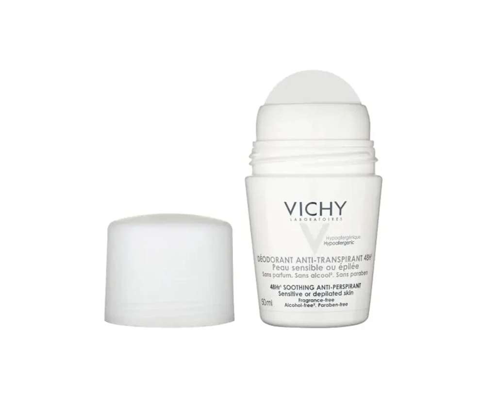 Stay fresh and dry with Vichy's Sensitive Skin 24hr Roll-On Deodorant 50ml to soothe sensitive underarms. Hypoallergenic formula. Clinically and dermatologically tested.